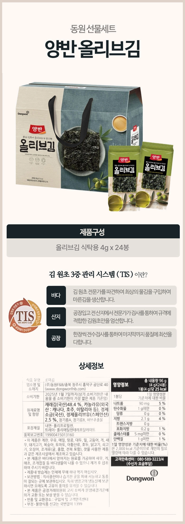 [동원] 2026 동원 올리브 김 식탁 케이스 96g(24PX4g)
