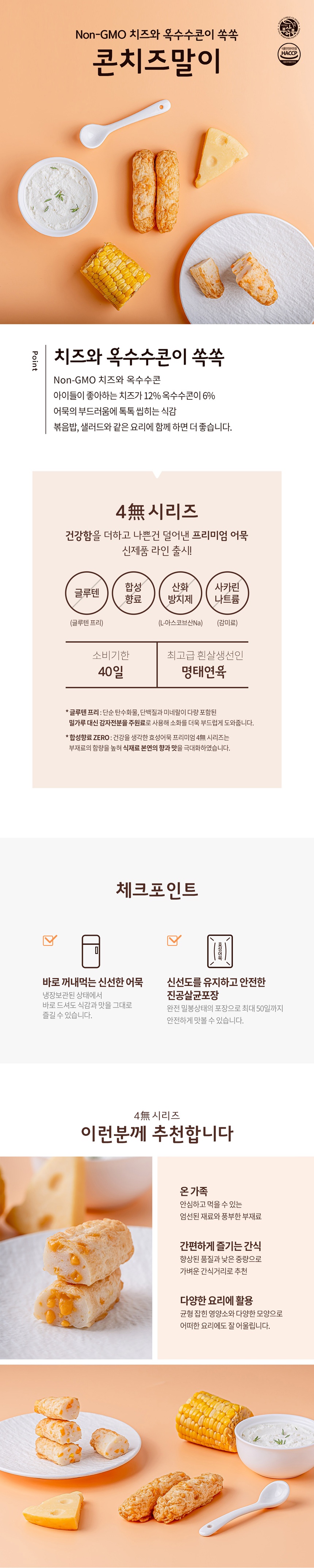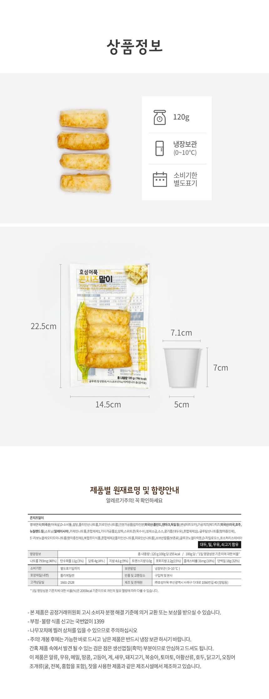 효성어묵 부산 전통 콘치즈말이 어묵 밀가루 없는 글루텐 프리 x 6개