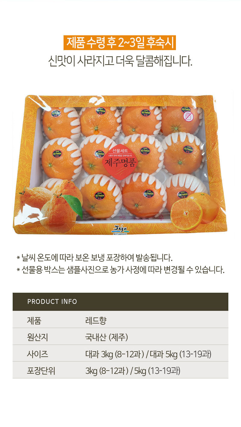 [베네팜] 제주 레드향 대과 3kg/5kg (선물용)