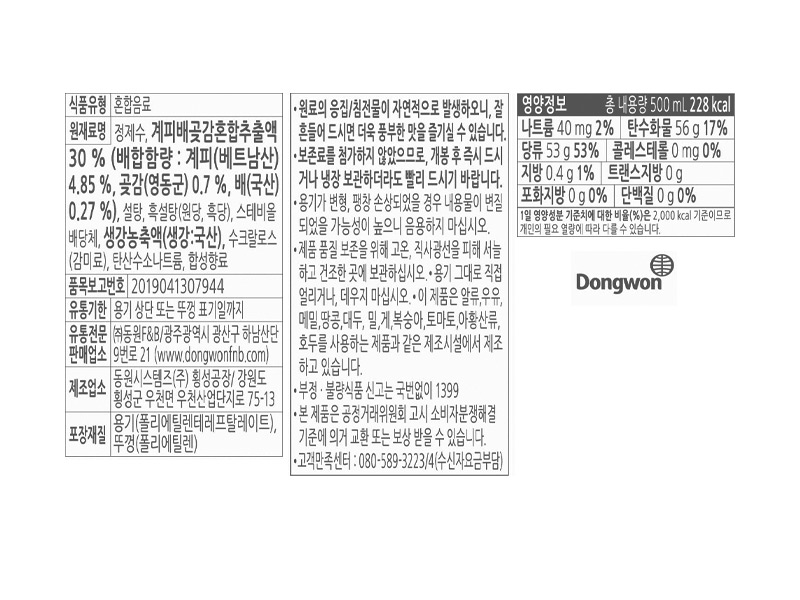 [동원] 양반 배수정과 500mL x 12병  (003830204)