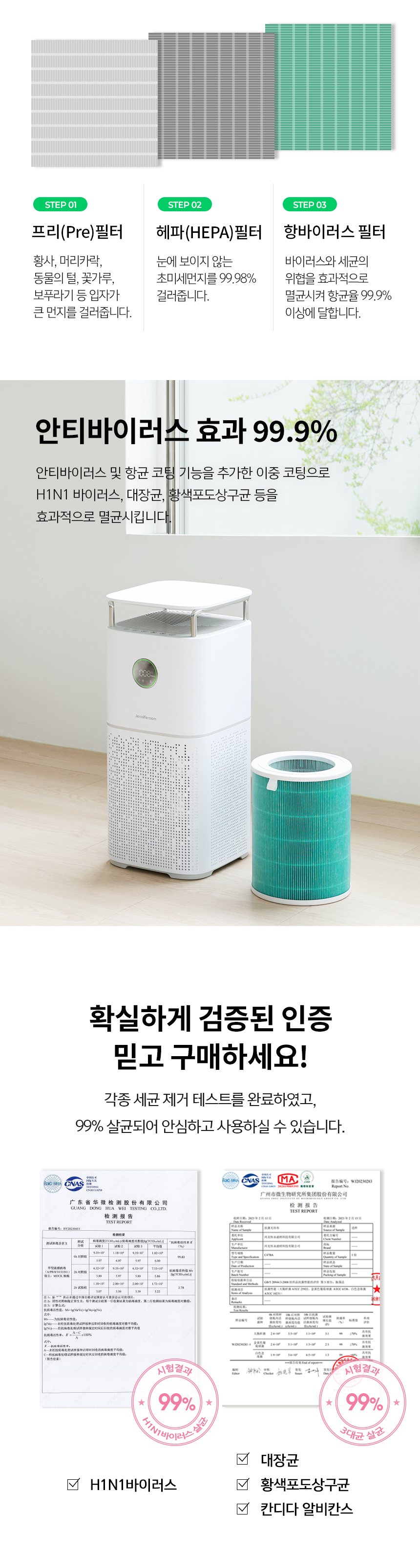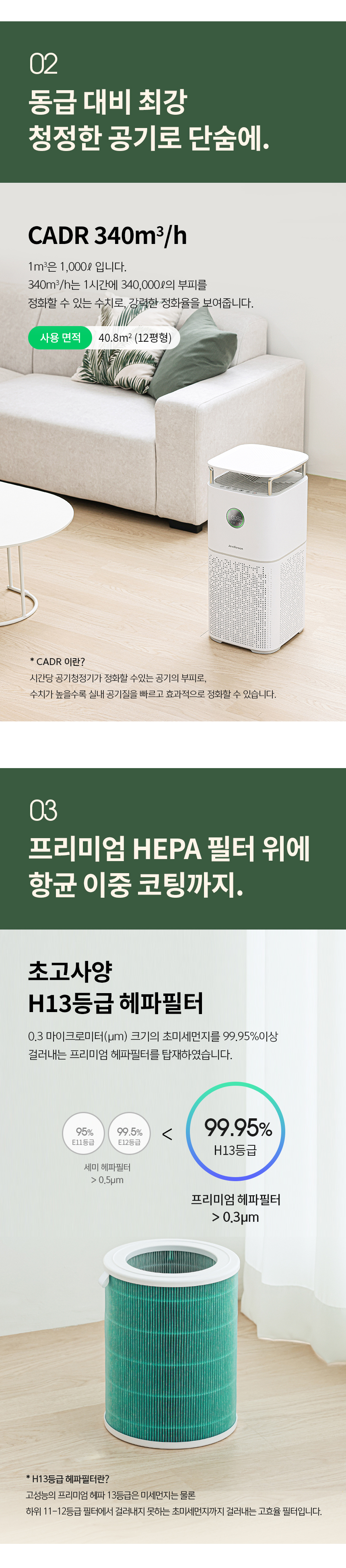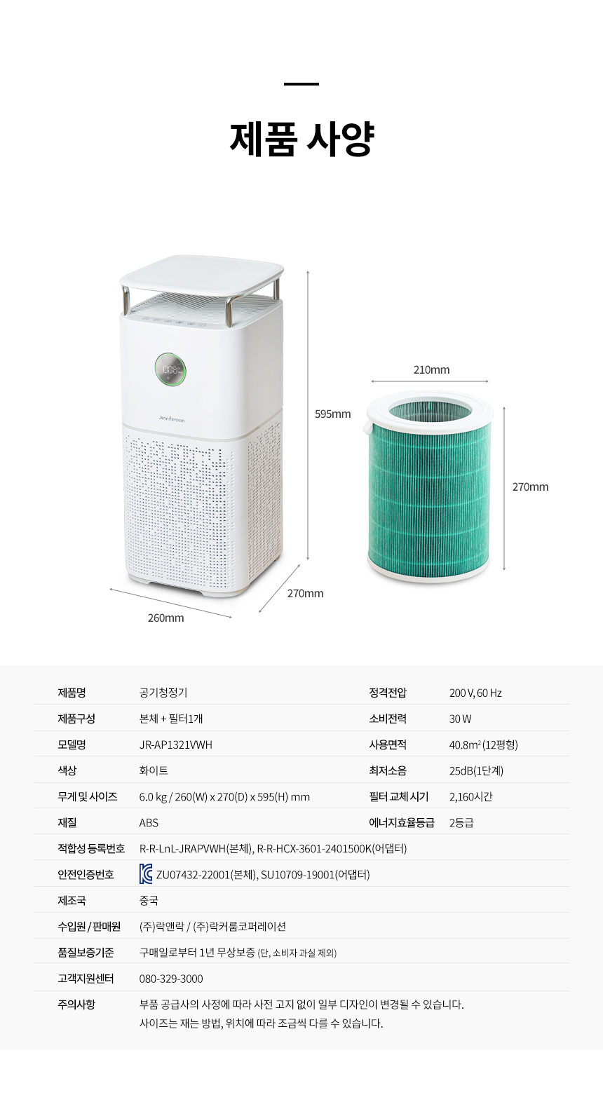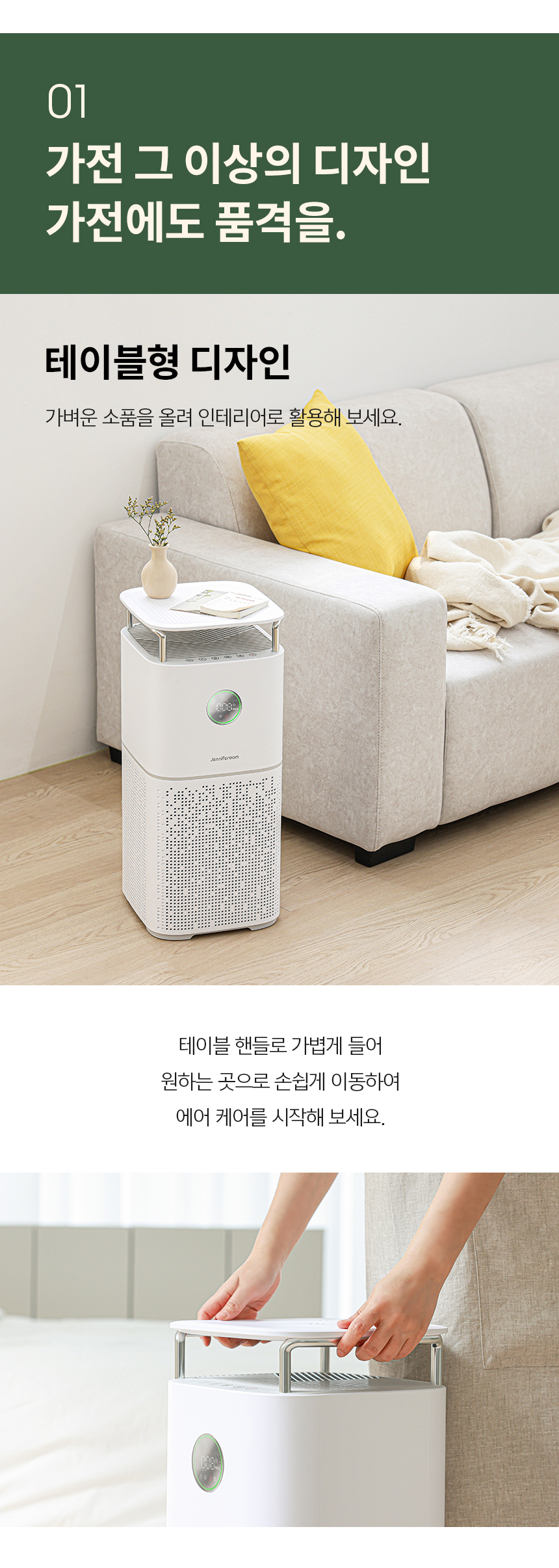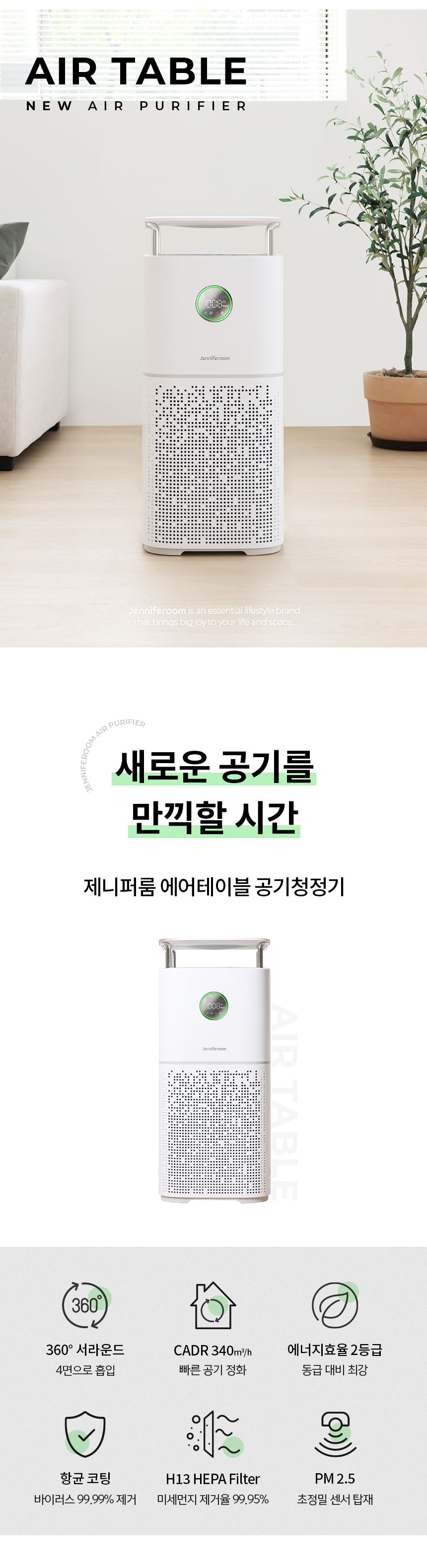 [제니퍼룸] 에어테이블 공기청정기 JR-AP1321VWH