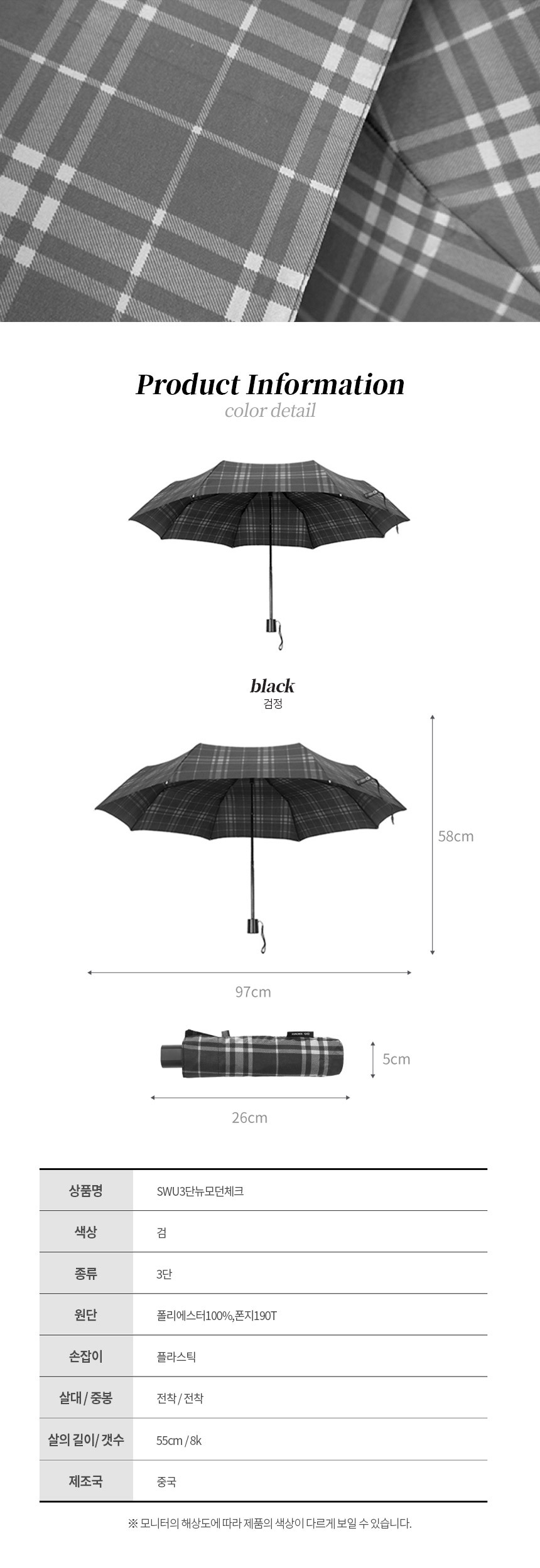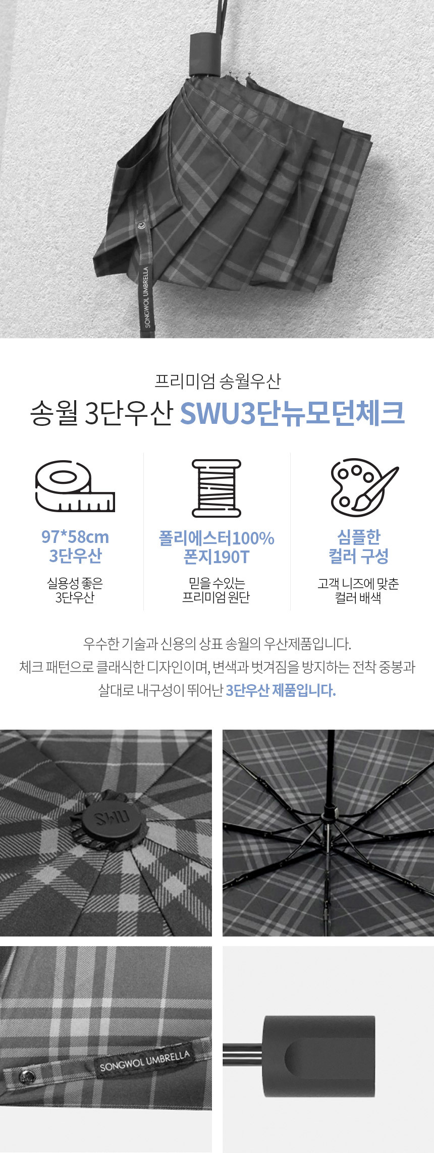 [송월] SWU3단뉴모던체크 3단우산