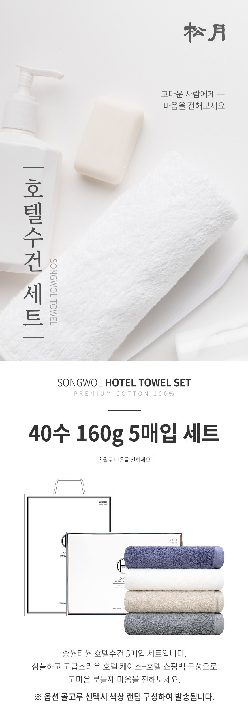 | 품명 및 모델명 | [송월] 40수코마무지 160g 호텔타올 5매입 선물세트 |