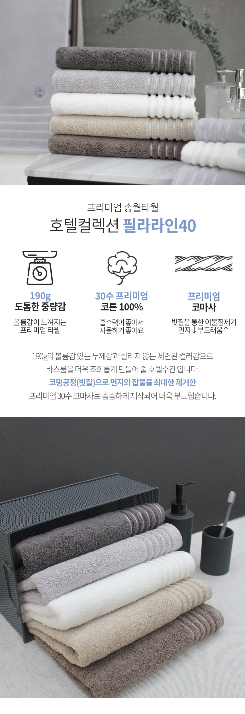 | 품명 및 모델명 | [송월] 호텔컬렉션 필라라인40 호텔수건 10장 |