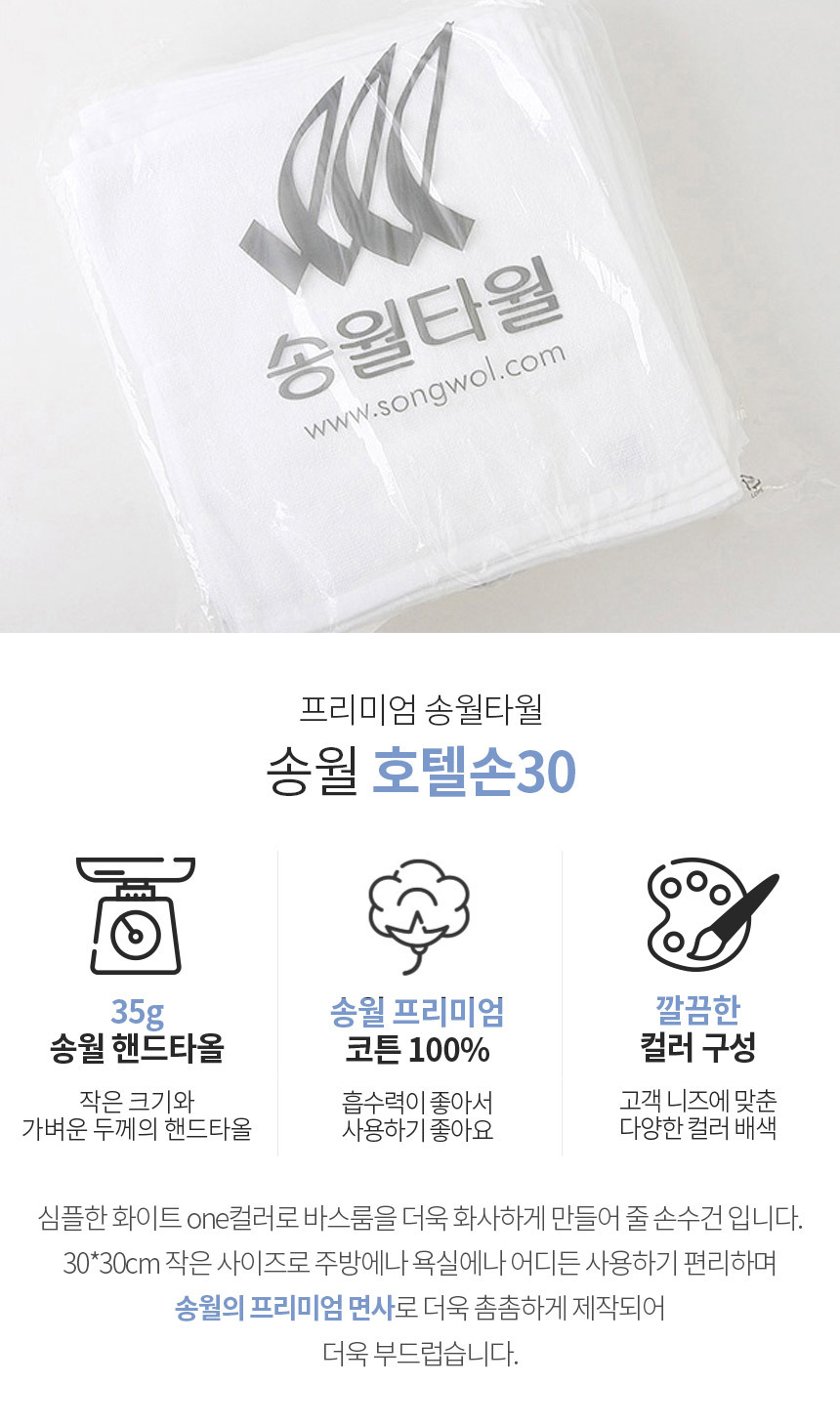 | 품명 및 모델명 | [송월] 호텔손30 핸드타올 10장 |
