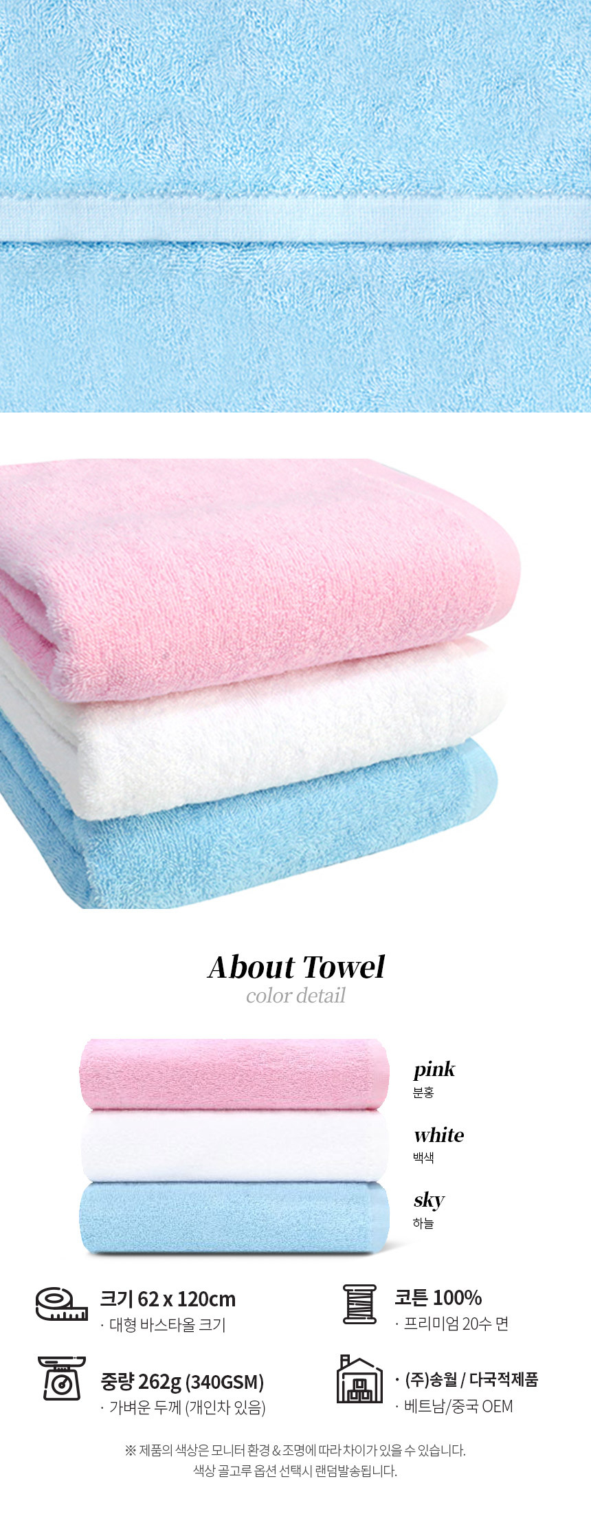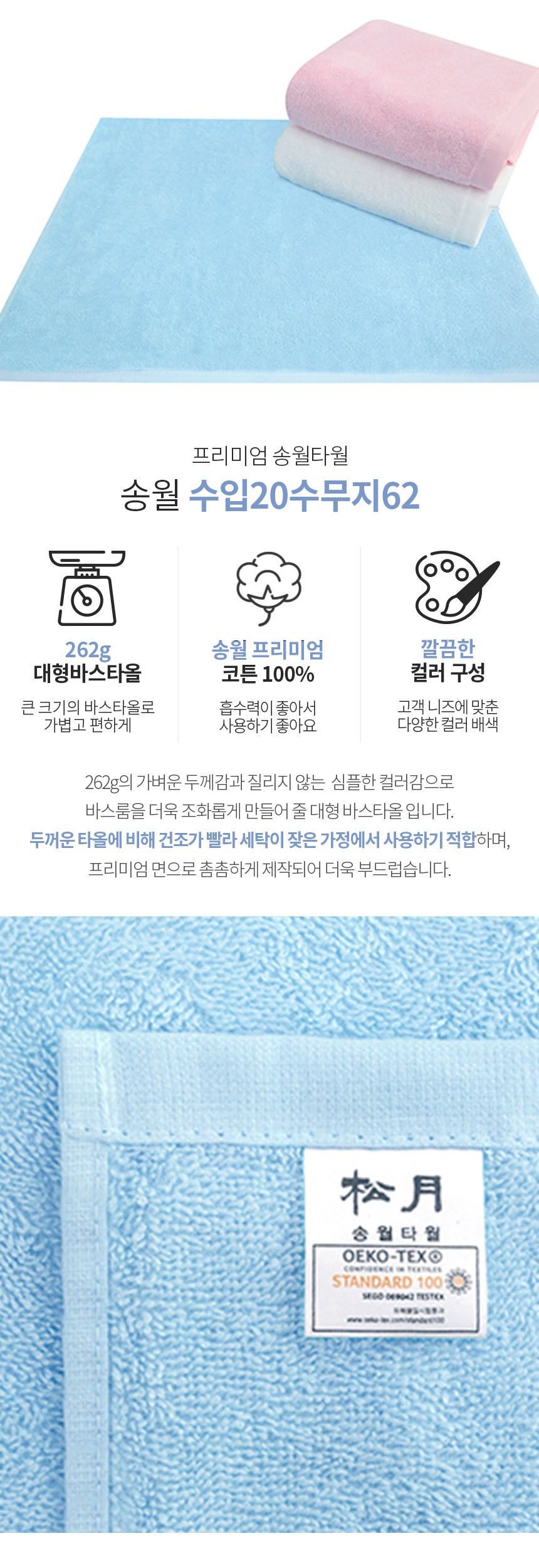 | 품명 및 모델명 | [송월] 수입 20수 무지바스62 바스타올 1장 |
