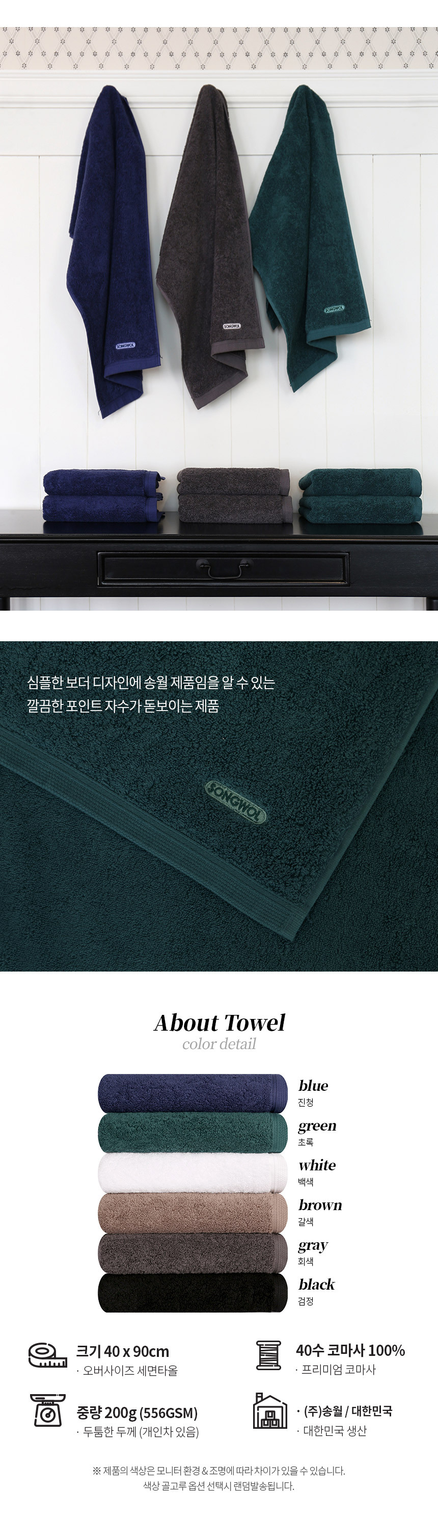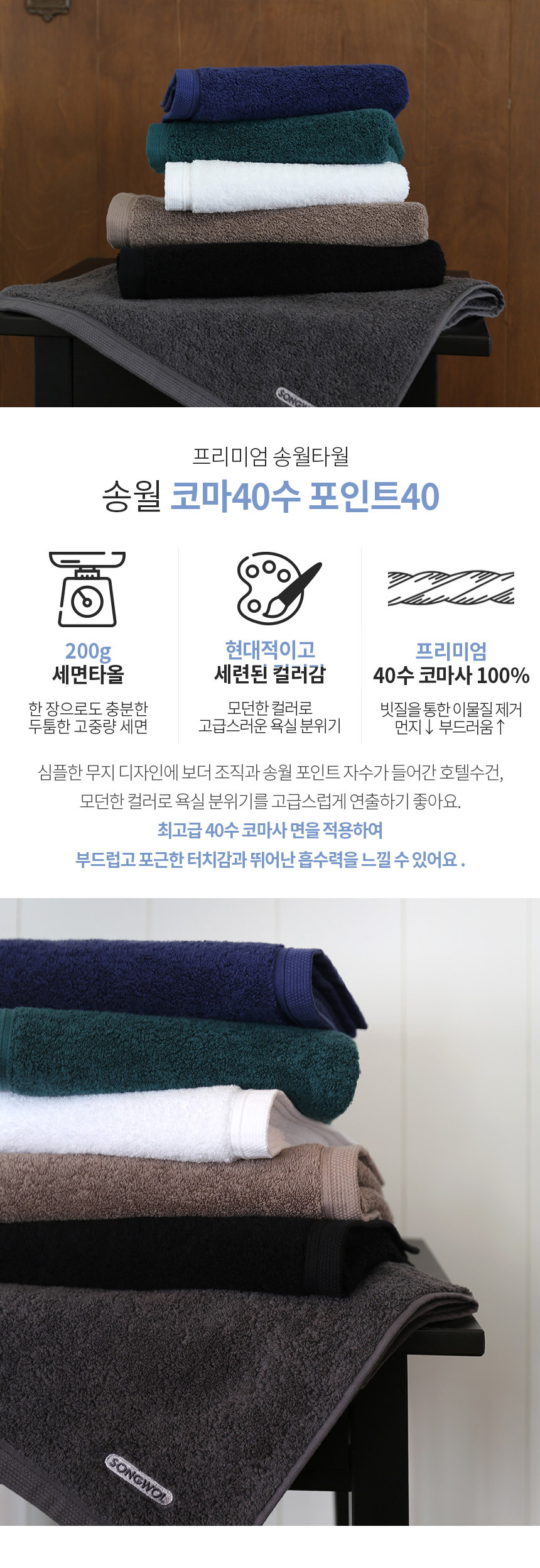 [송월] 코마40수200g 포인트40 세면타올 5장