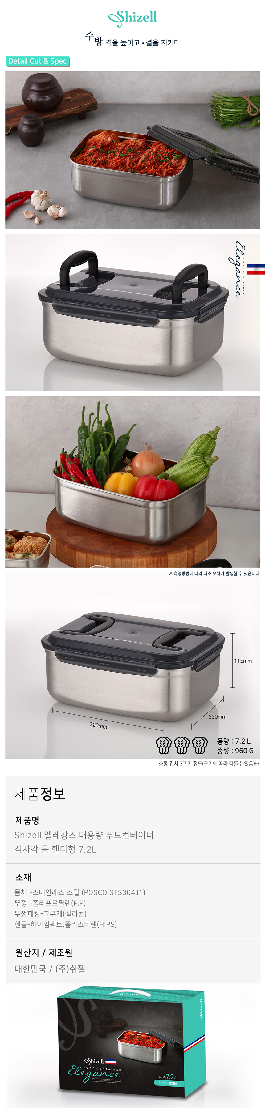 [쉬젤] 엘레강스 대용량 푸드컨테이너 직사각7.2L