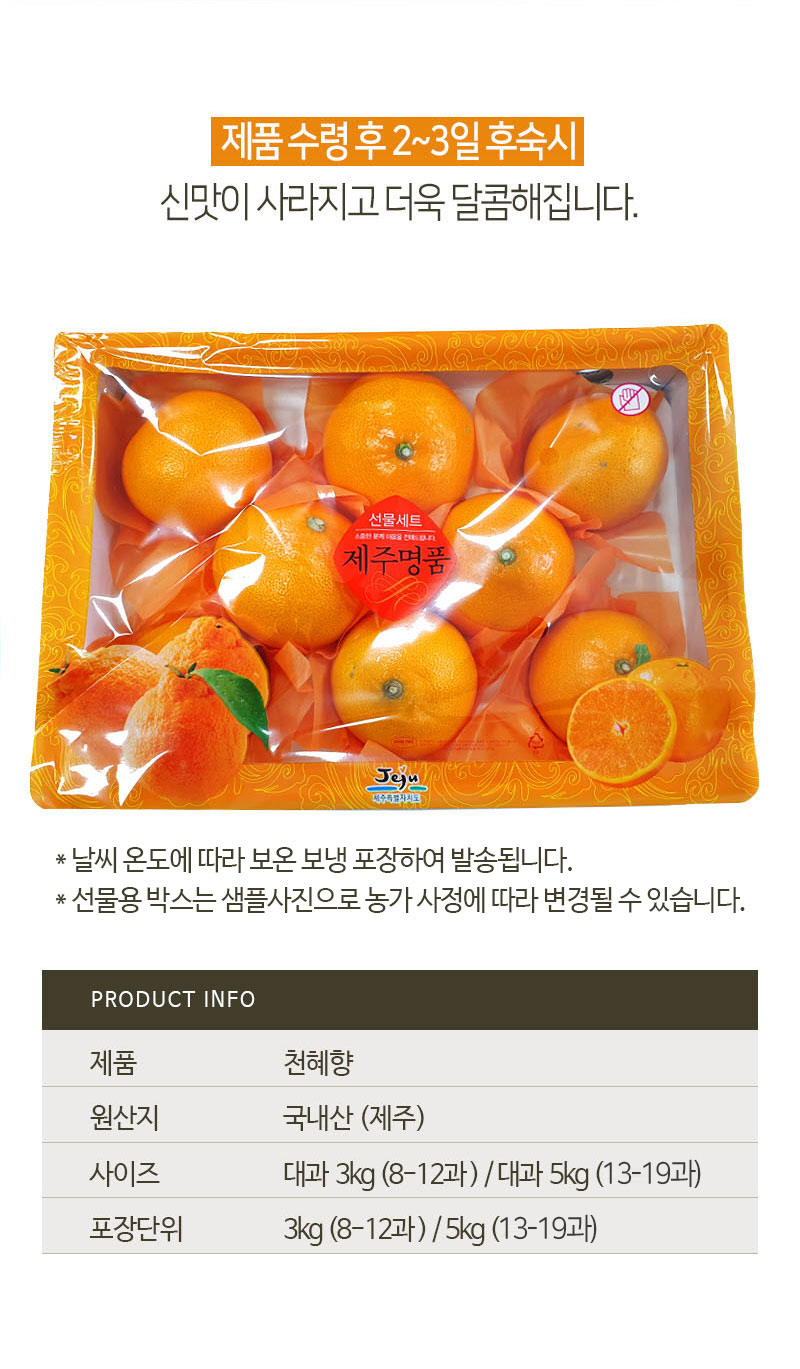 [베네팜] 제주 천혜향 대과 3kg/5kg (선물용)