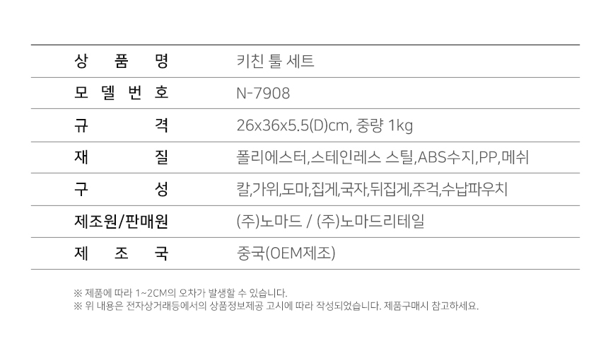 노마드 휴대용 캠핑 용품 키친툴 세트 올리브 N-7908