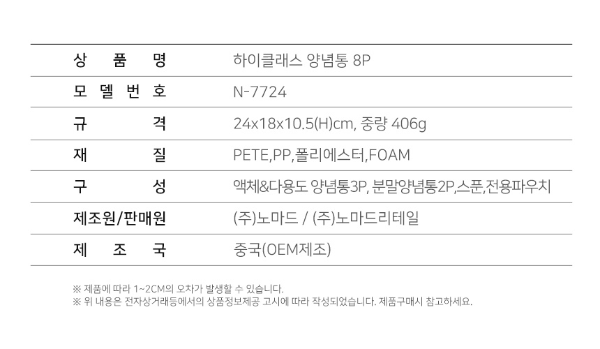 노마드 휴대용 캠핑용 하이클래스 양념통 그레이8p N-7724
