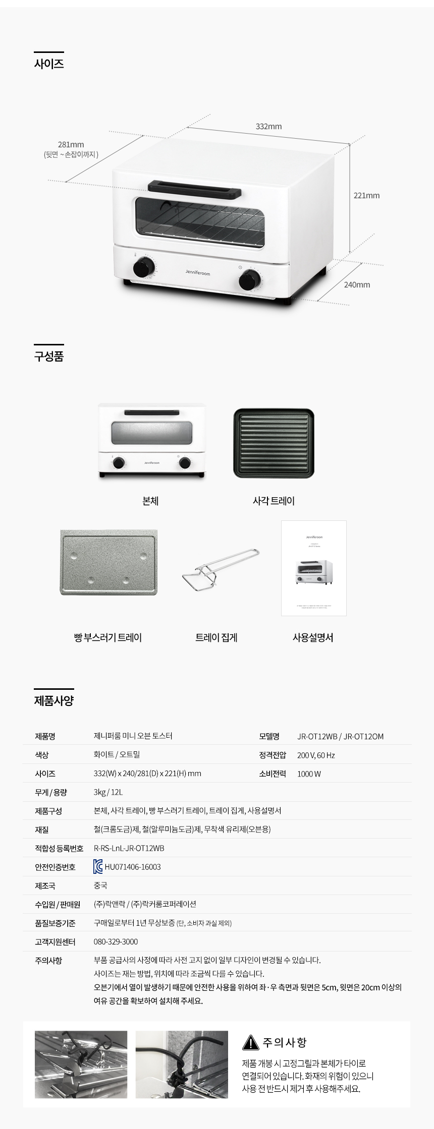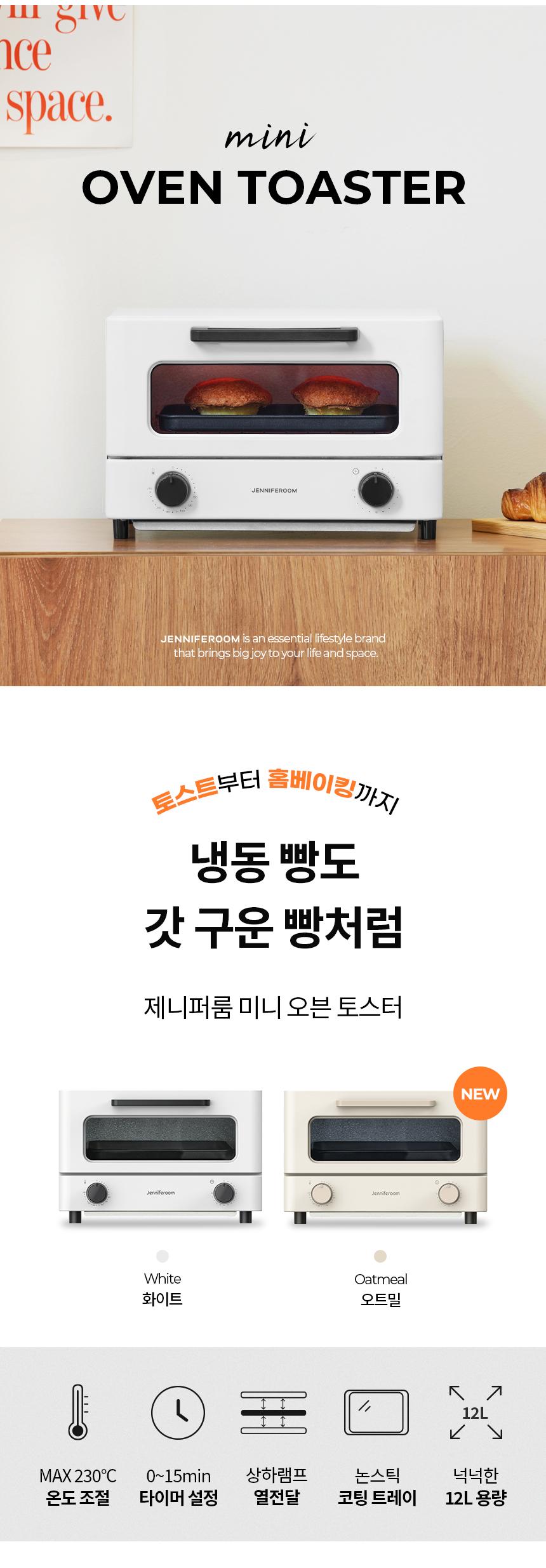 [제니퍼룸] 미니 오븐토스터 화이트 JRK-OT12WB