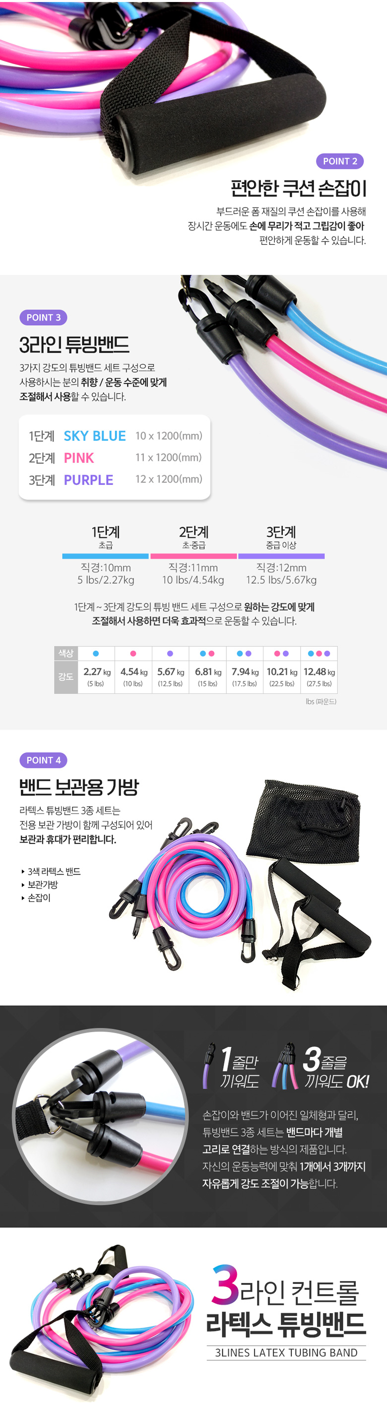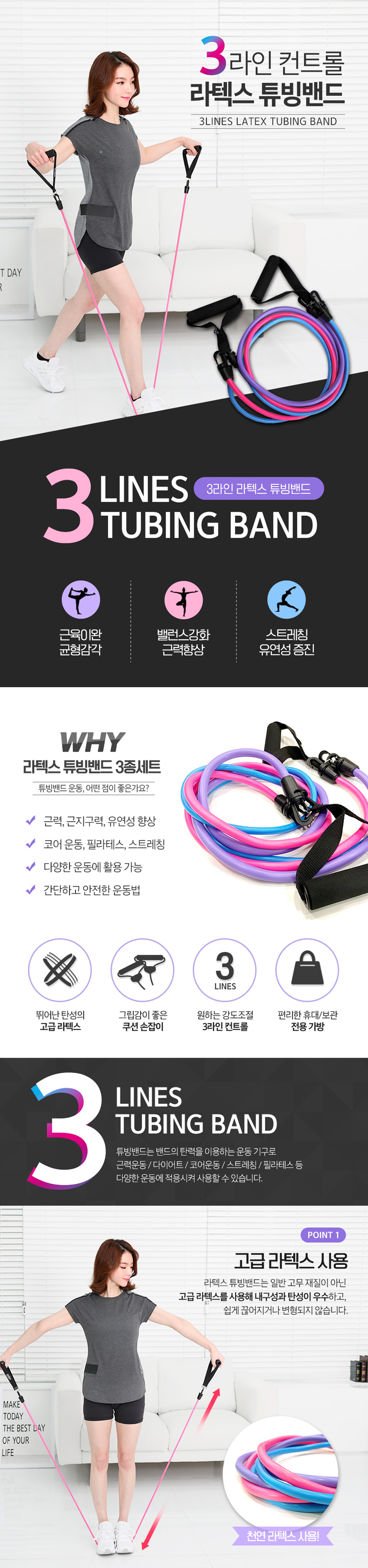 [클라우드5] 필라테스 라텍스 튜빙밴드 3종세트(총7단계)
