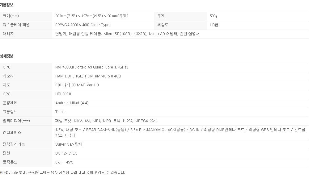 [아이나비] M500 16GB 내비게이션 / Extreme 3D MAP / T-Link / Ublox 8 GPS / Android 4.4 Kikat