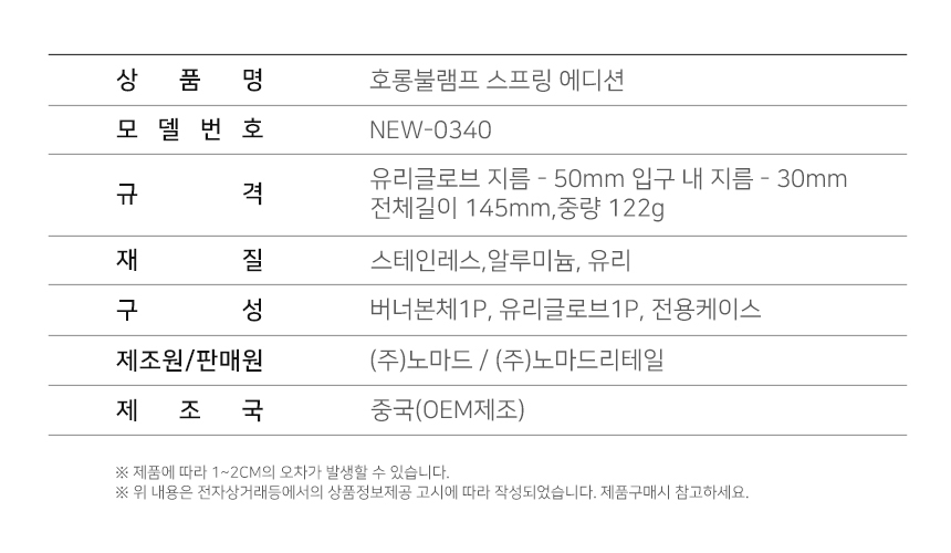 노마드 휴대용 캠핑 호롱불 램프 골든벨 NEW-0340