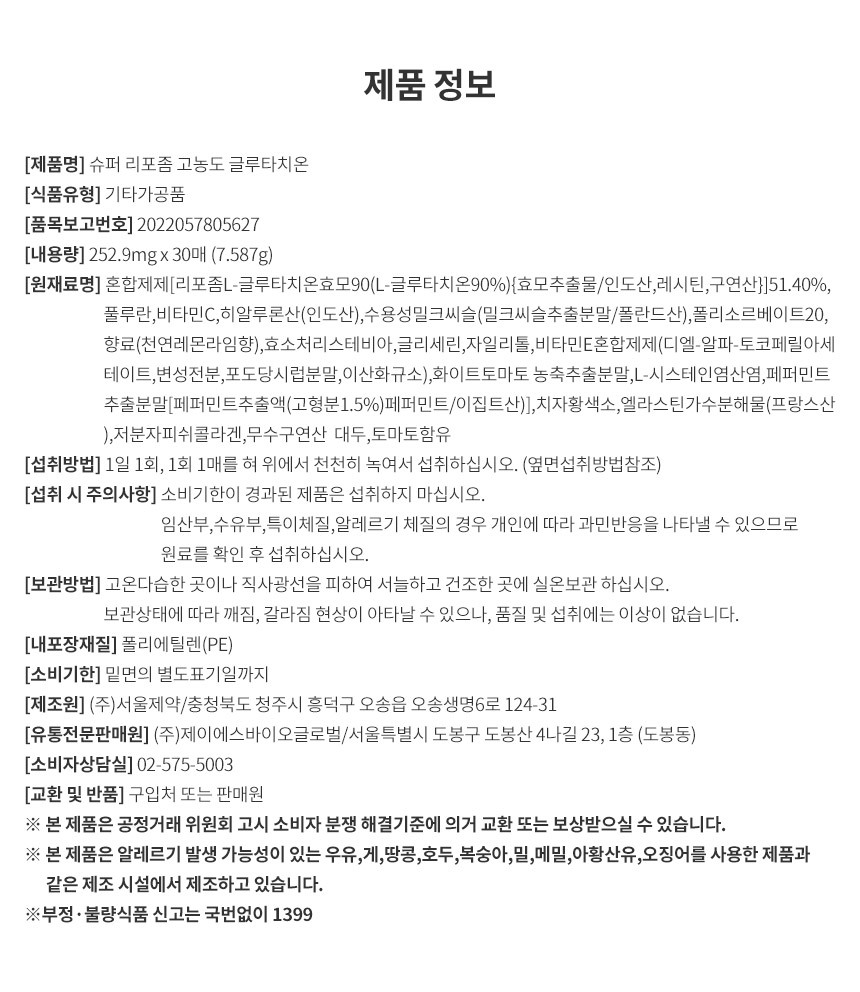 | 원재료명 및 함량 | 상세기술서 참조 |
