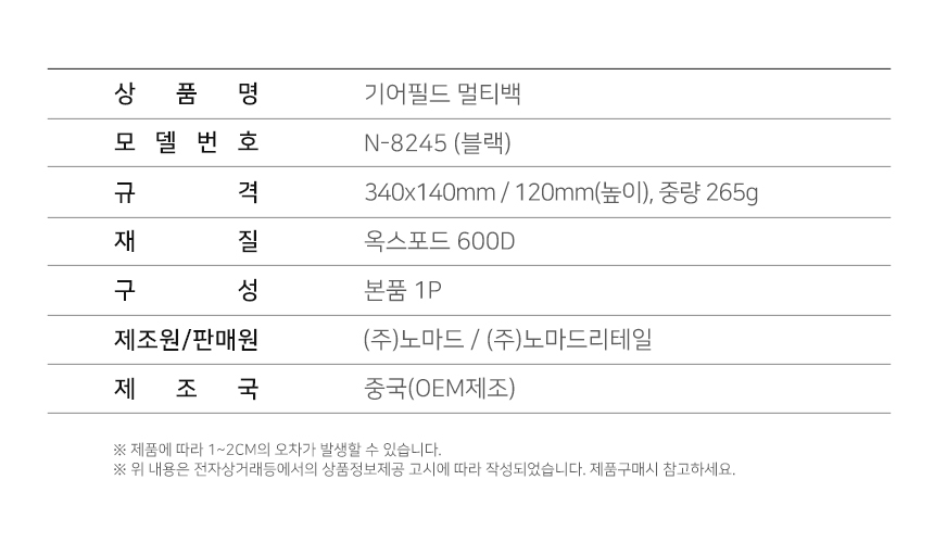 노마드 캠핑용 기어필드 멀티백X5(블랙) N-8245
