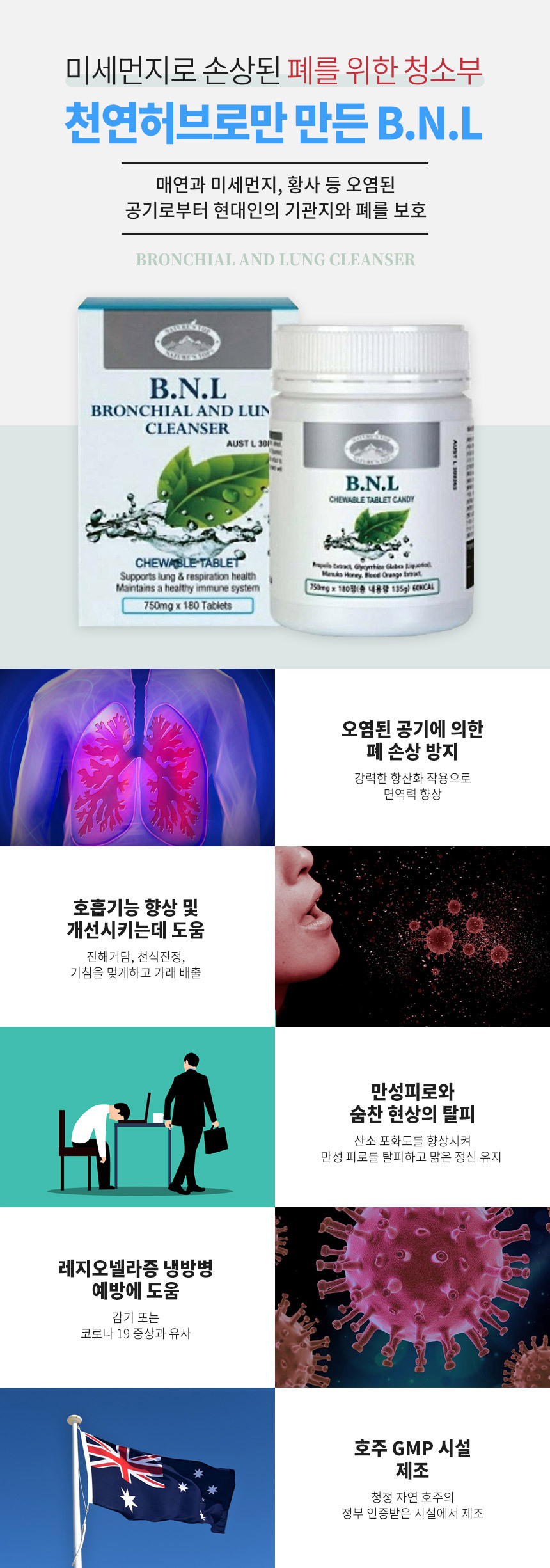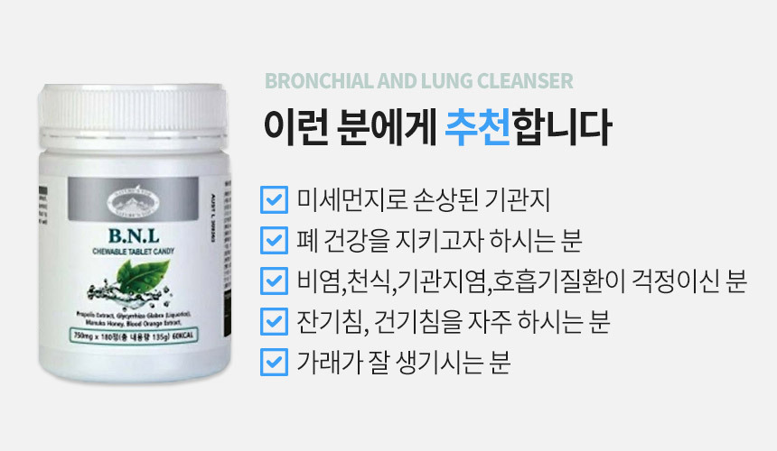 [네이쳐스탑] BNL폐 클렌저 750mg*180정