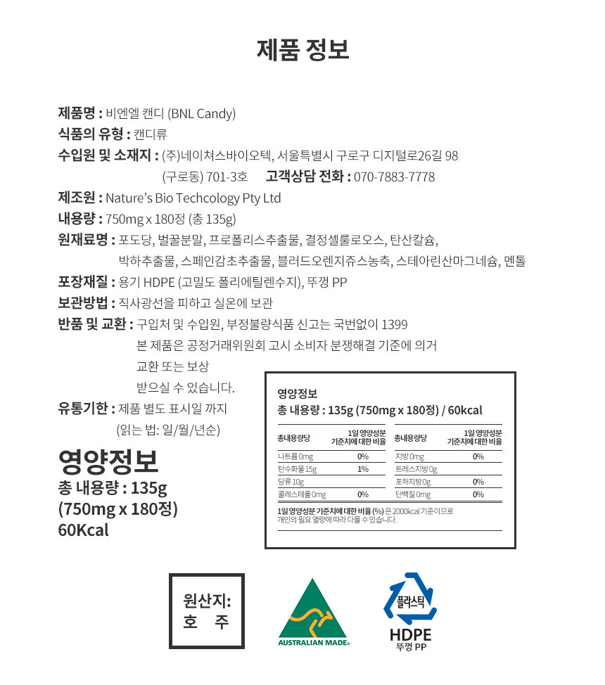 생산자 및 소재지 NATURE'S BIO TECHNOLOGY PtY. LTD.