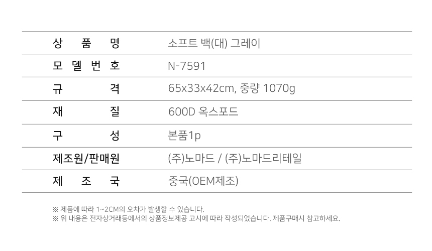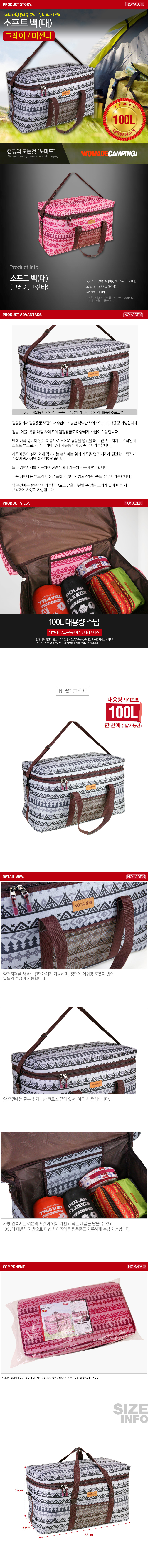 노마드 휴대용 캠핑 용품 (그레이) 소프트 백(대) N-7591