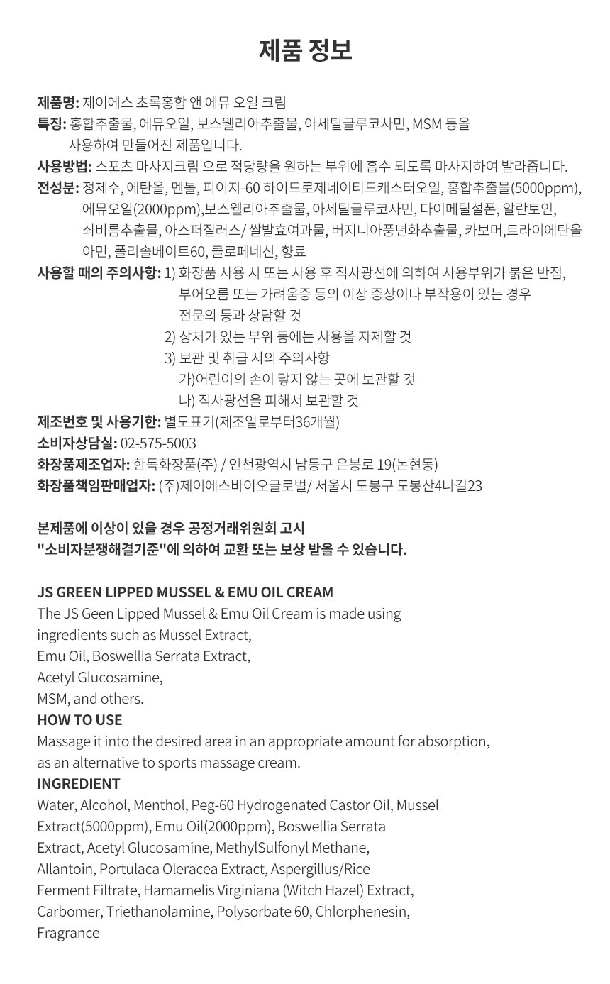| 사용방법 | 스포츠 마사지크림으로 적당량을 원하는 부위에 흡수되도록 마사지하여 발라줍니다. |