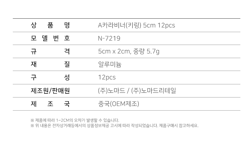 노마드 휴대용 캠핑용 5cm A 카라비너 키링 12개 N-7219
