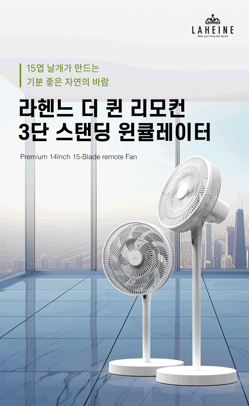 [신한카드 할인][라헨느] 더 퀸 3단 스탠딩 15엽 윈큘레이터 리모콘 선풍기 LHNF-D2200W