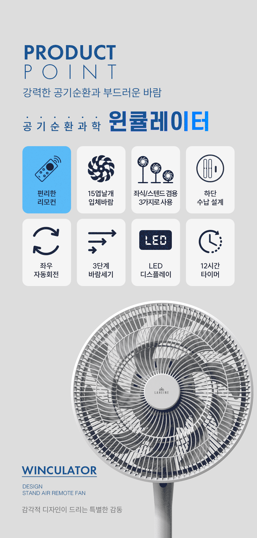 [신한카드 할인][라헨느] 더 퀸 3단 스탠딩 15엽 윈큘레이터 리모콘 선풍기  LHNF-D2200W
