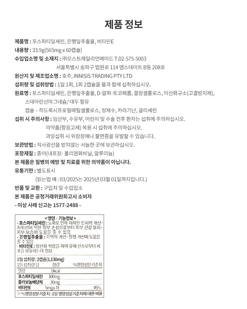 | 생산자 및 소재지 | INNISIS TRADING PTY LTD |