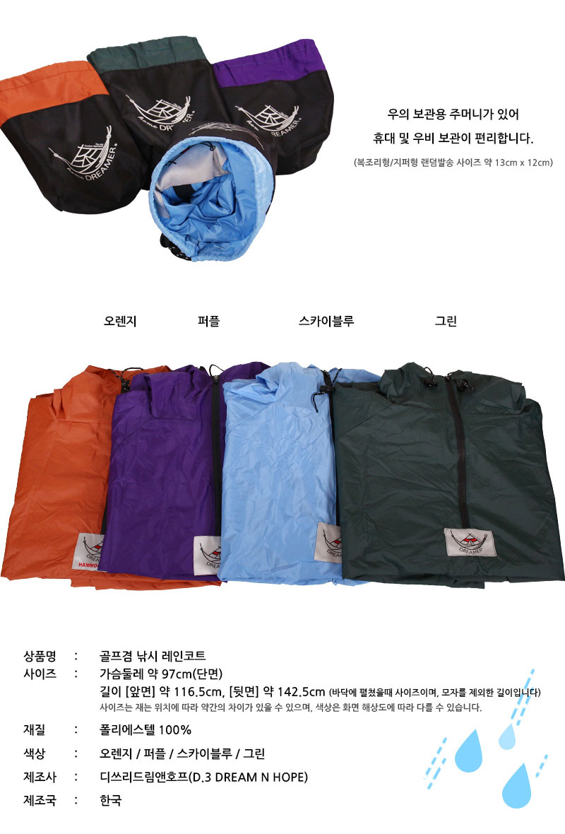 [홈드리머] 최고급 다목적 캠핑레저 레인코트 우의 우비(남녀공용)