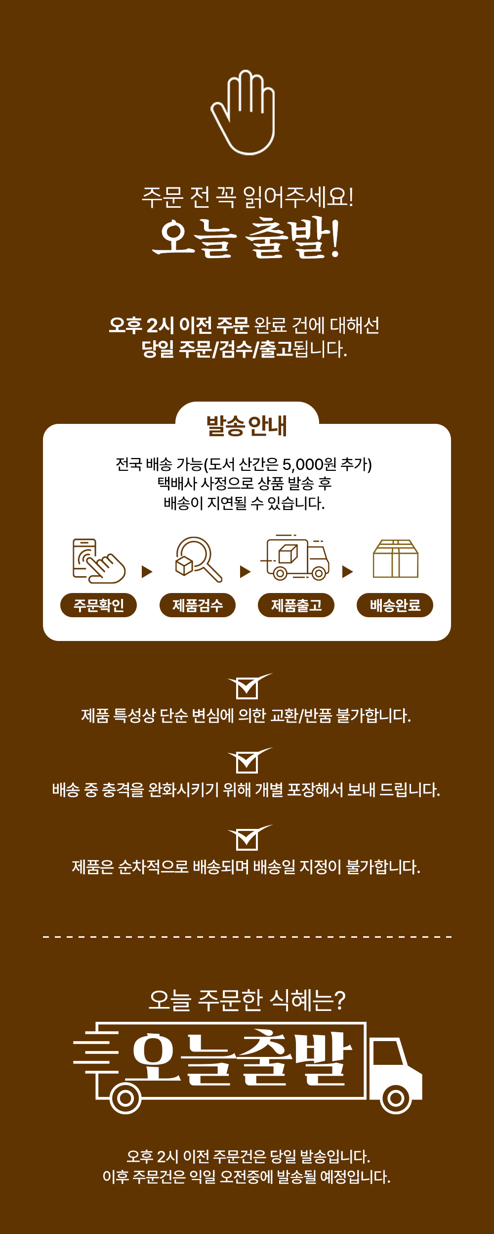 주문일로 부터 5일이내 제조된 제품으로 발송해드립니다.