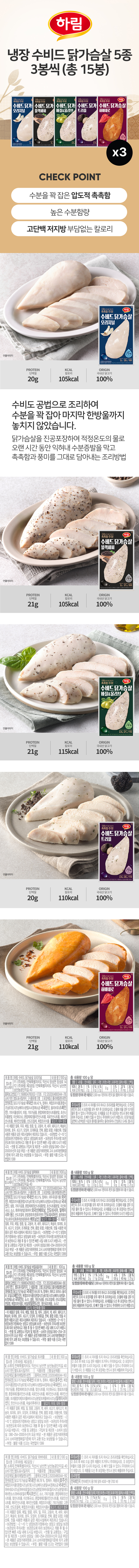 [하림] 냉장 수비드 닭가슴살 5종 3봉씩 (총 15봉)