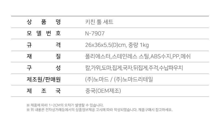 노마드 휴대용 캠핑 용품 키친툴 세트 아이보리 N-7907