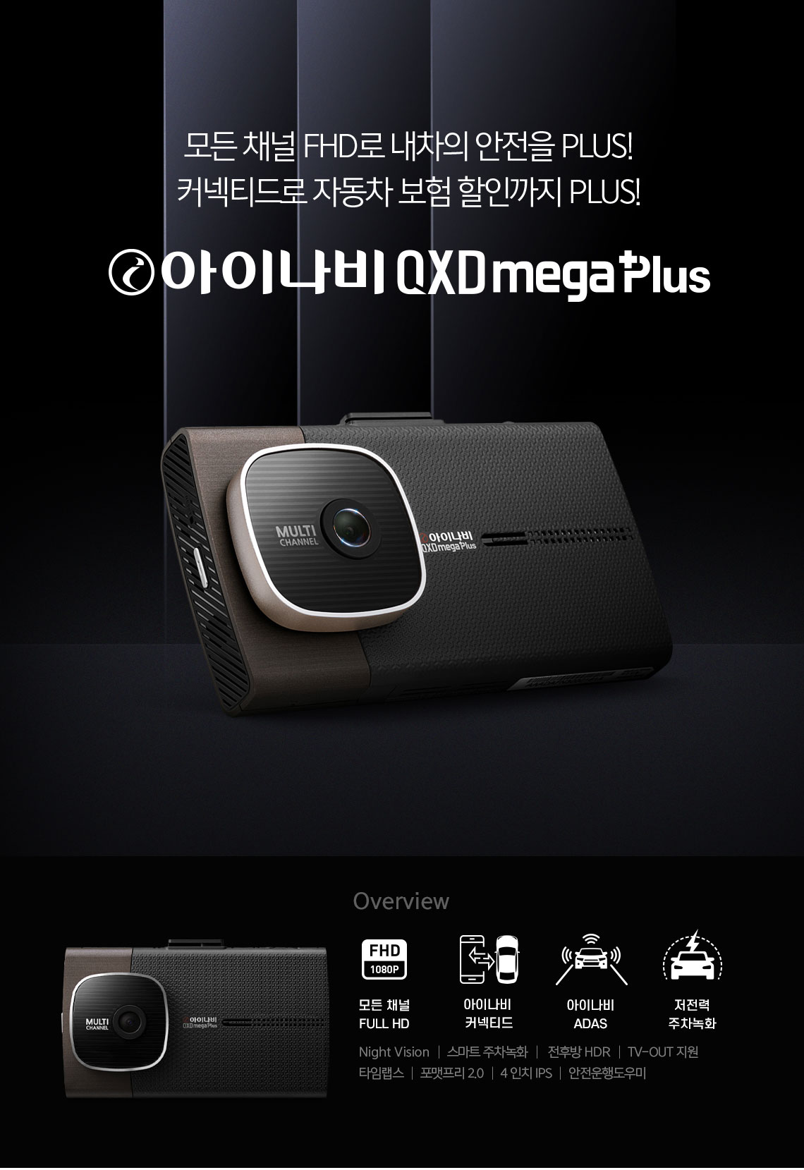 아이나비 QXD MEGA PLUS 64GB 3채널 블랙박스