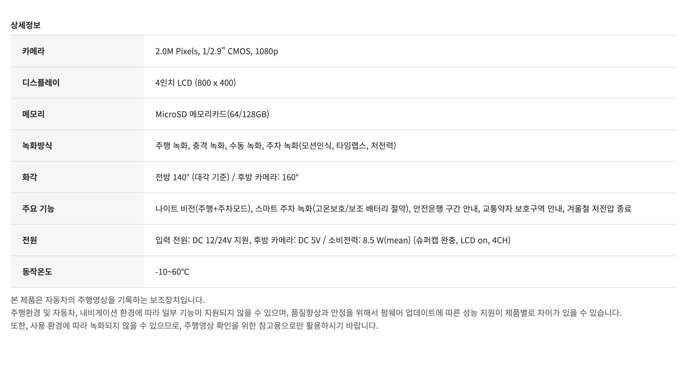 제조사 상품기술서 참조