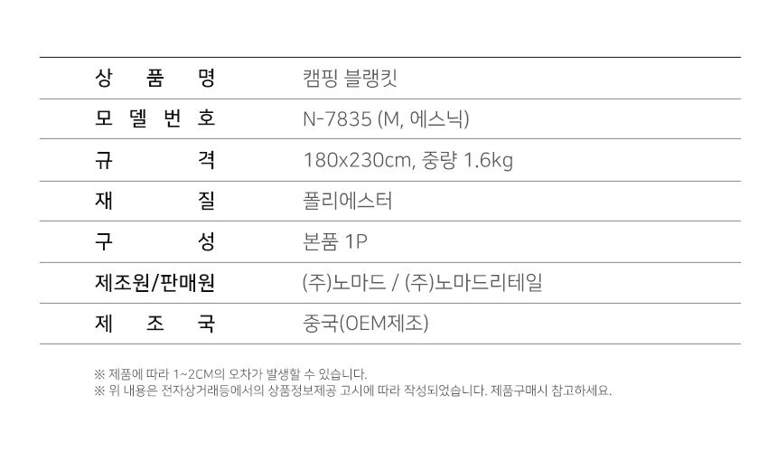 노마드 블랭킷 에스닉M 감성 카페트 담요 휴대용 캠핑 용품 N-7835
