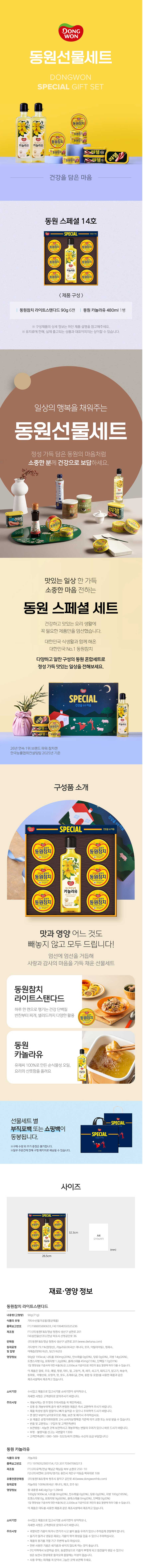[26년설][동원선물세트] 스페셜 14호 (라이트스탠다드 90g 6캔 + 카놀라유 480ml 1병)