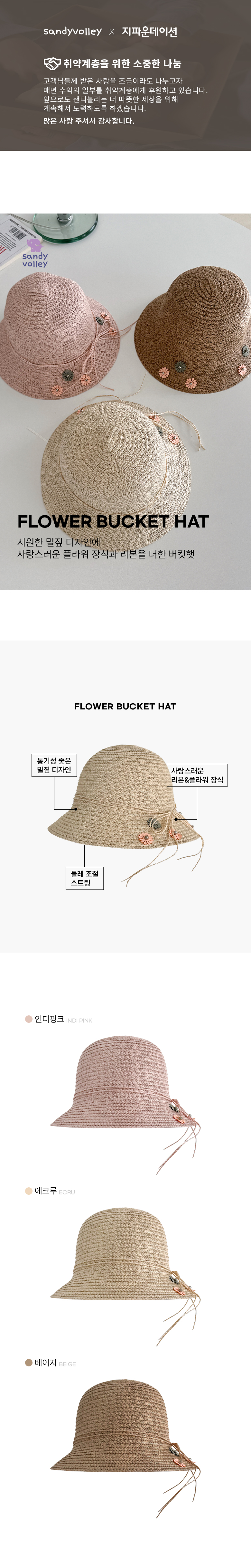 [우드피카] 유아용 플라워 리본 버킷햇 (색상3종/택1)