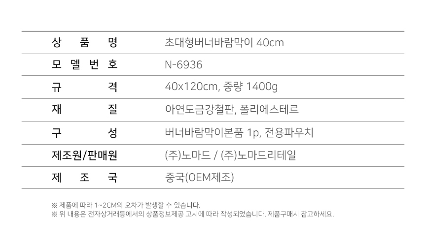 노마드 캠핑용 초대형 버너 바람막이 40cm N-6936