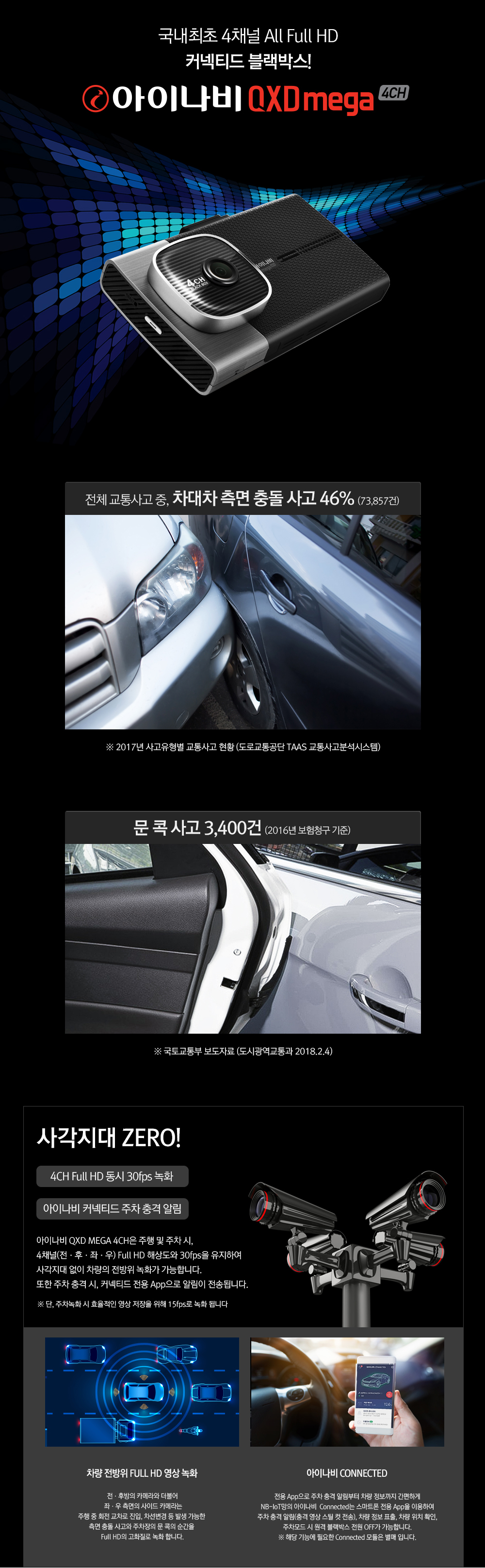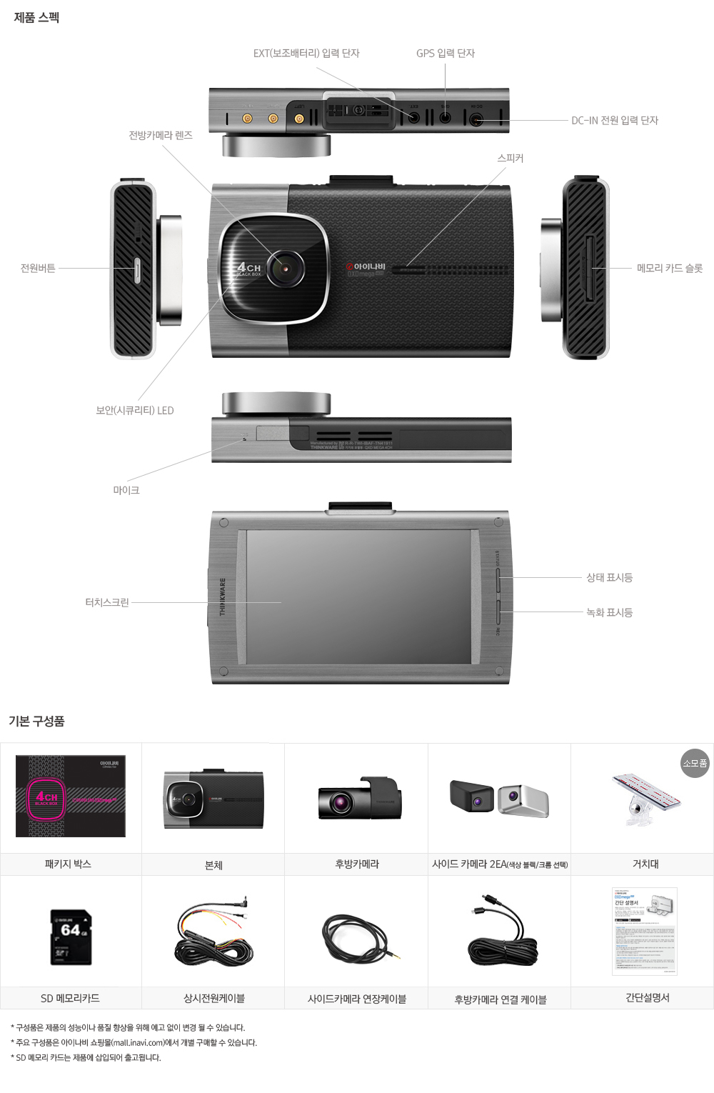 [아이나비] 4채널 QXD MEGA 4CH 64GB 기본패키지 블랙박스