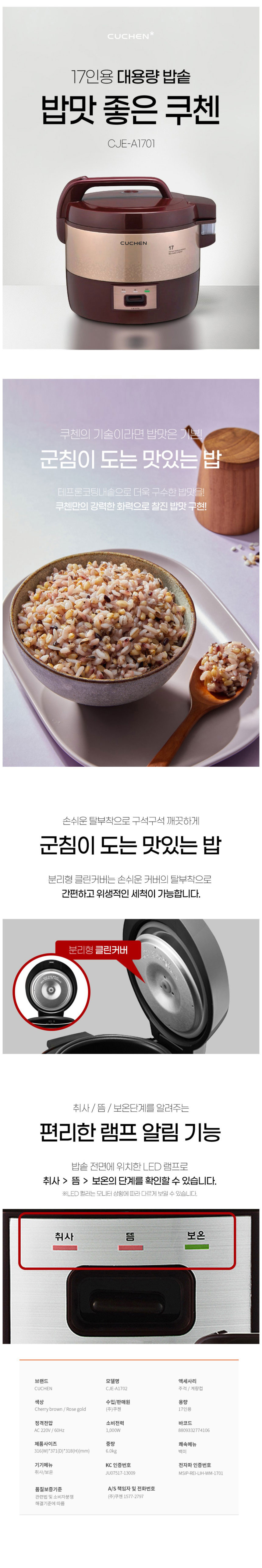 쿠첸 17인용 업소용밥솥 CJE-A1701