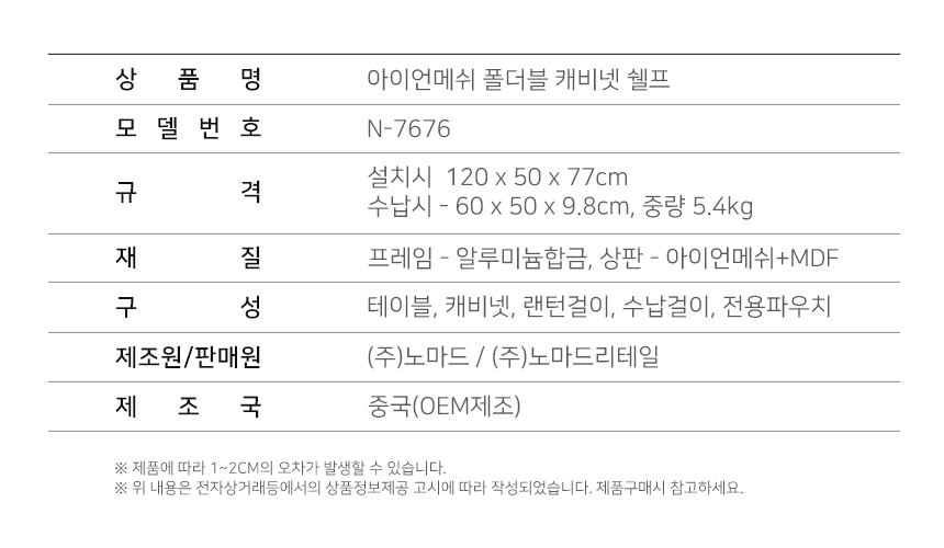 노마드 아이언메쉬 폴더블 캐비닛 쉘프 접이식 휴대용 캠핑 용품 N-7676