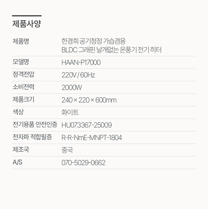 | 품질보증기준 | 수입.판매원 1년 무상A/S |