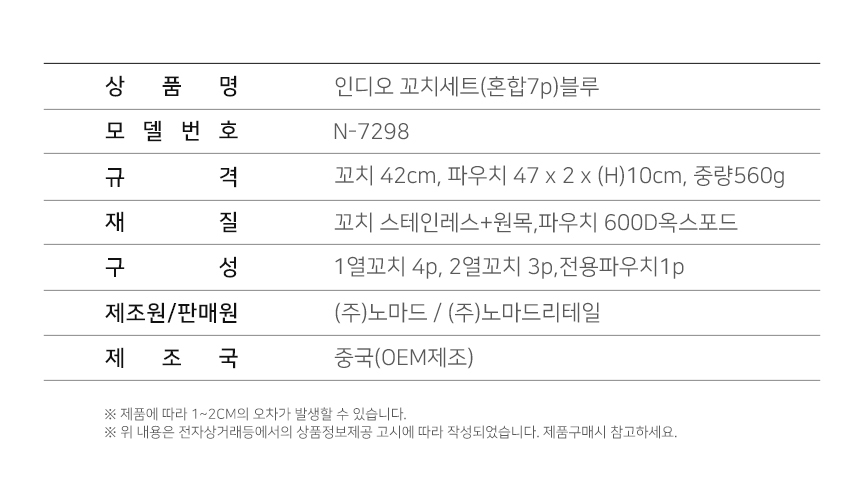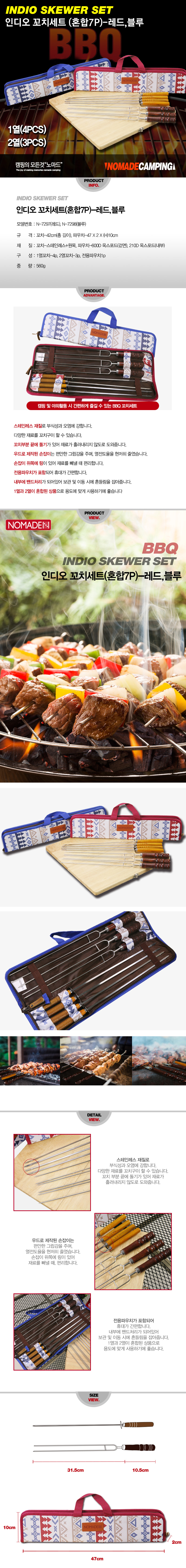 노마드 캠핑용 꼬치세트(혼합7p) 블루 N-7298