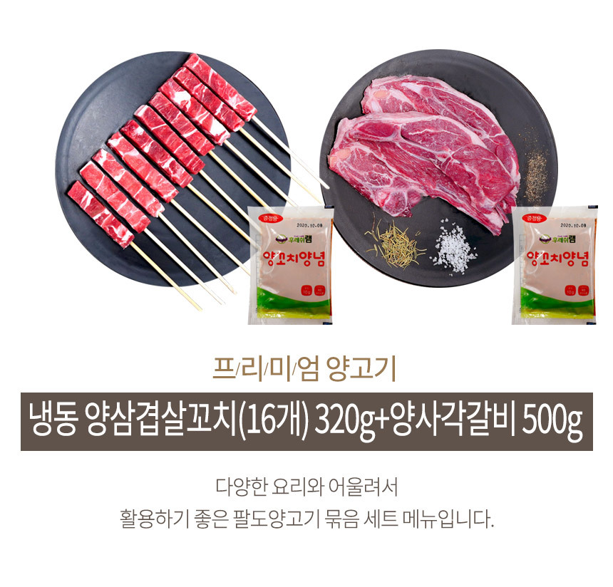 양고기 냉동 양삼겹꼬치 320g(16개) + 양사각갈비 500g +소스20g