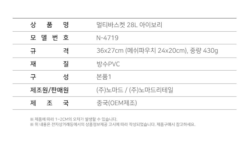 노마드 캠핑용 멀티 바스켓 28L 아이보리 n-4719