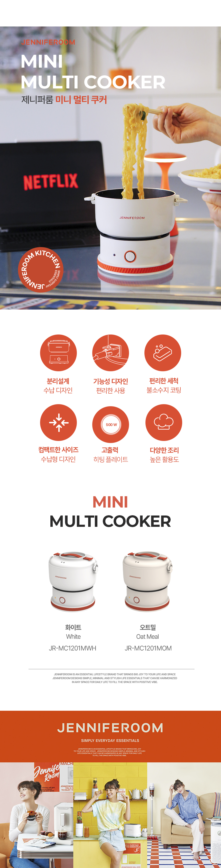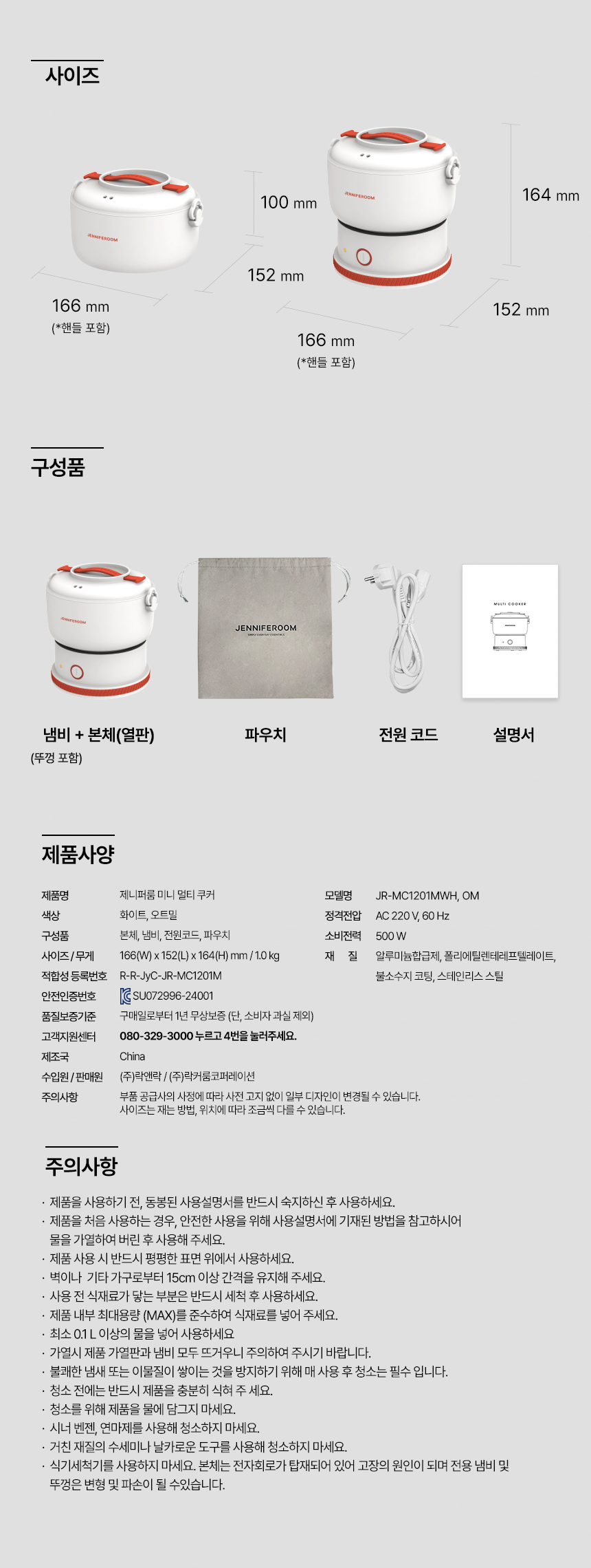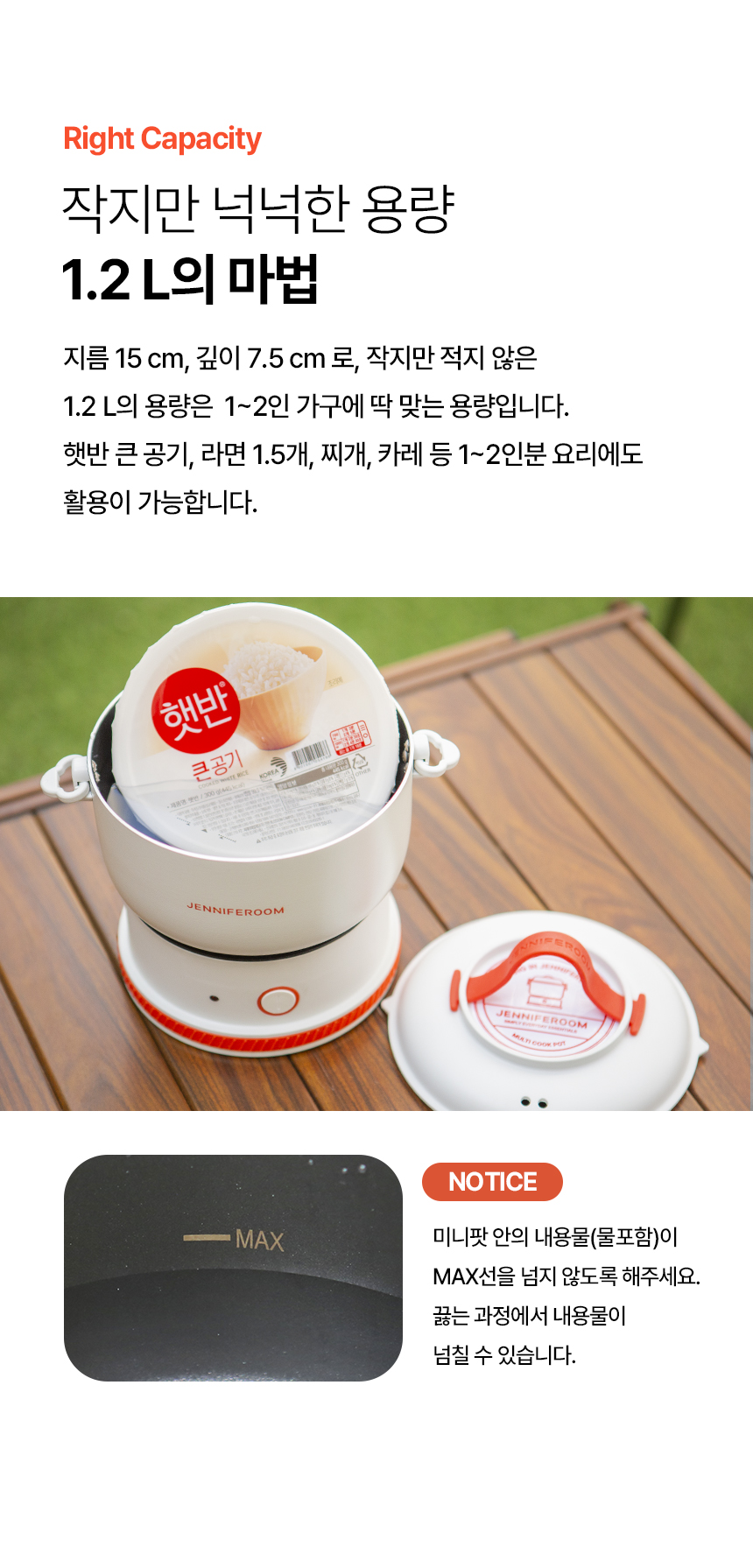 [제니퍼룸] 가정용 캠핑용 미니 멀티쿠커 2종 (냄비+인덕션) 화이트 JR-MC1201MWH
