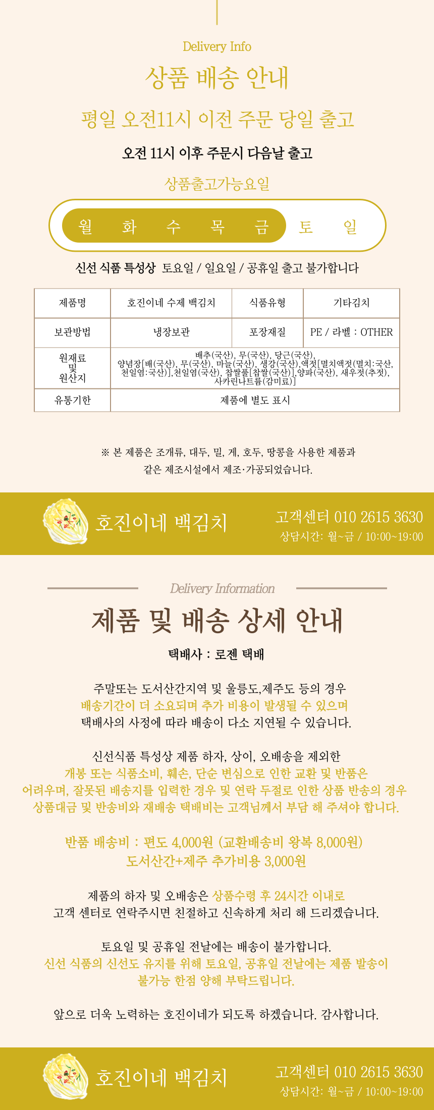 [행사특가]매일담그는 오늘애 배추 백김치 모든재료 국내산 2kg/3kg/5kg/10kg