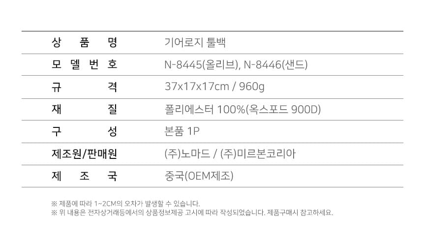 노마드 휴대용 캠핑가방 공구함 N-8446 기어로지 툴백 샌드 N-8446